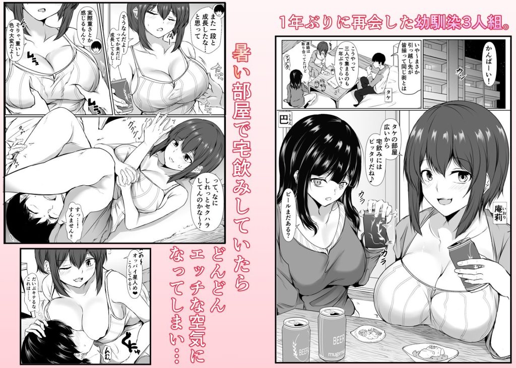 再会した女友達との宅飲みで昔のノリを取り戻し、エッチな時間を過ごす同人作品。日常的なシチュエーションがエロティックに変わる展開が魅力。感情的な描写で読者を引き込む。